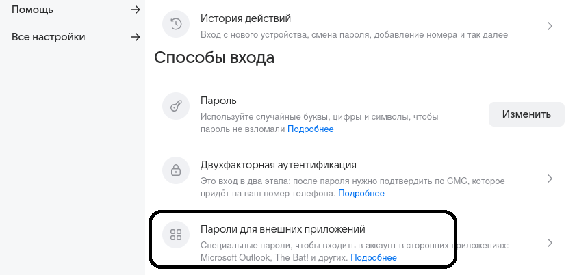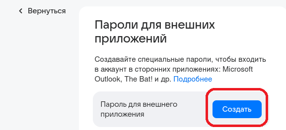Затем в «Пароли внешних приложений».
