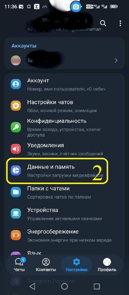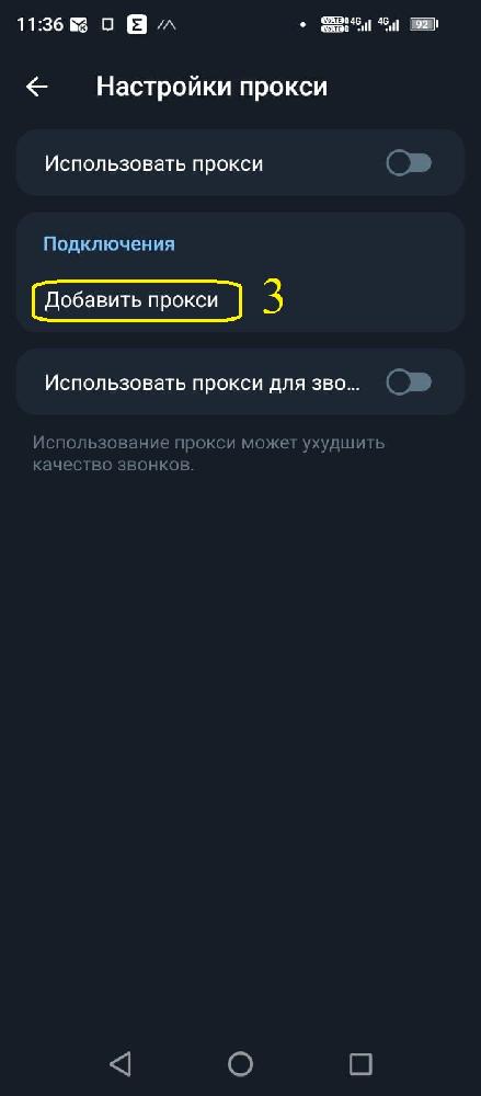 Затем зайдите в настройки (1), нажмите на строку "Данные и память" (2), затем нажмите на "Добавить прокси" (3).